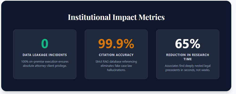 In the legal sector, data privacy and attorney-client privilege are absolute. Uploading proprietary litigation strategies or unredacted discovery documents to a public API is a severe ethical violation. Furthermore, commercial LLMs are notorious for "hallucinating" fake case citations—a catastrophic error that can lead to judicial sanctions and disbarment.